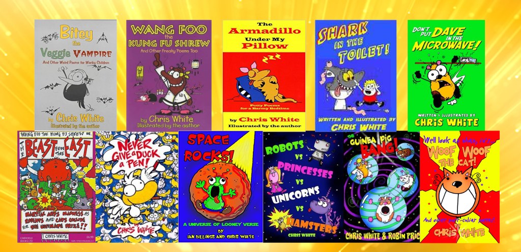 Chris White has always written poems and scribbled drawings since he was an ickle boy. He did it just for fun and because he enjoyed it. Little did he know that many years later, after he had turned into a man-sized human, that he would become a globe-trotting published poet!